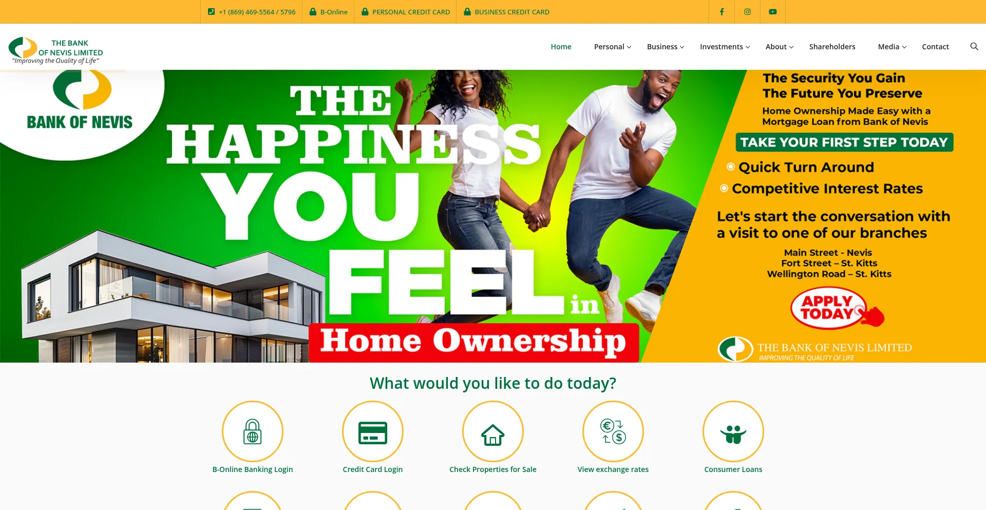 网站上存在社交媒体链接表明 thebankofnevis.com 在社交媒体上维护官方账户,这是可信度和参与度的积极信号。