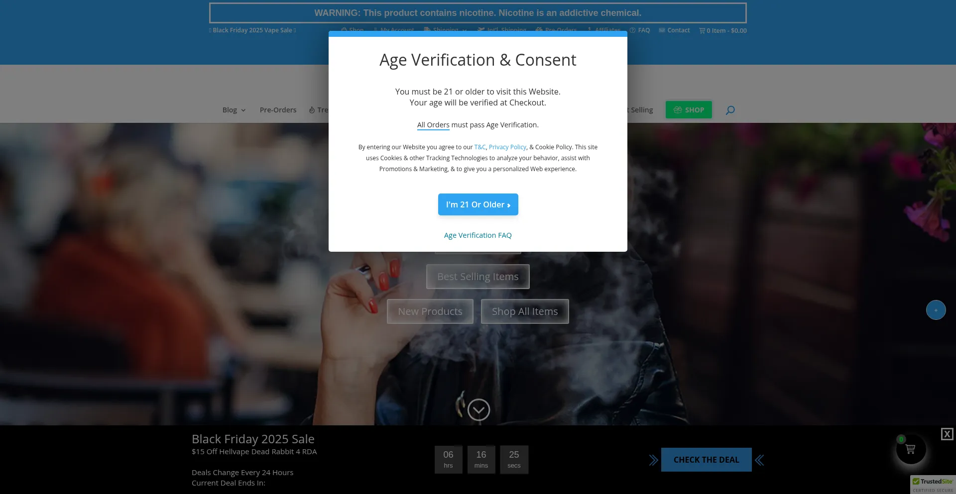该网站显示来自认可机构的安全认证或信任印章,表明符合安全标准、数据保护协议或行业法规。来自 thebestvape.com 的信任印章表明遵守已建立的安全实践和运营透明度。