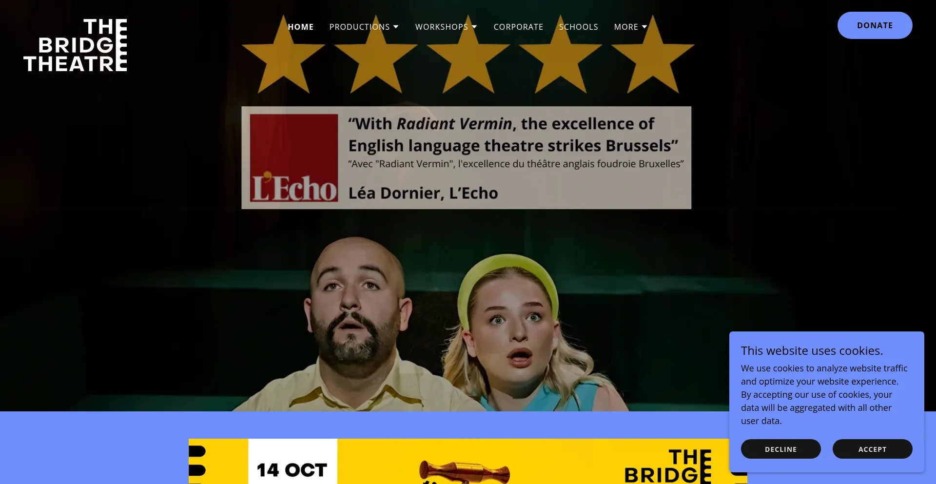 We produce professional theatre in English in Brussels and use the power of theatre to create eye-opening events for companies and engaging workshops for all.