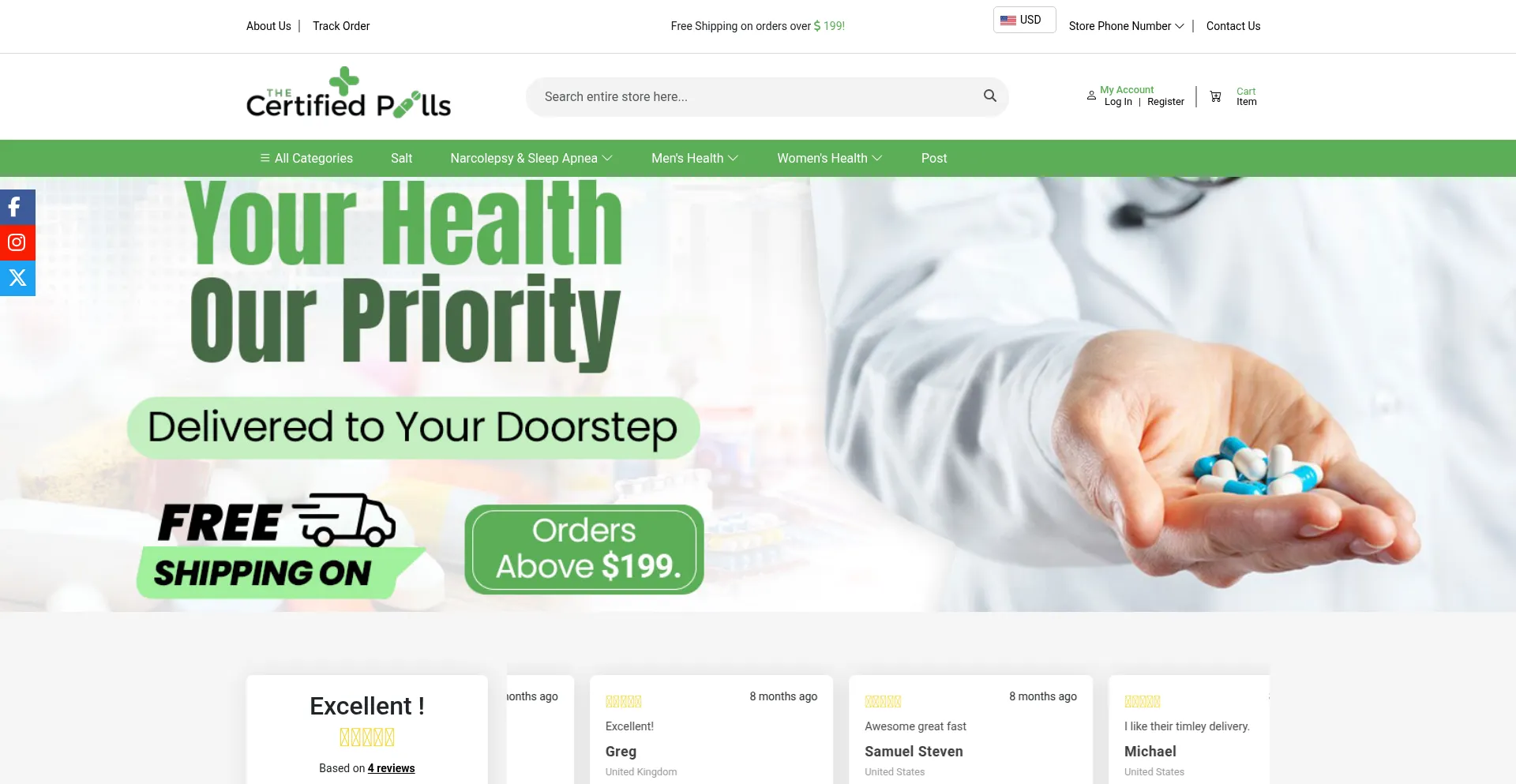 分析显示 thecertifiedpills.com 显示社交媒体图标或链接,但不连接到合法的社交媒体档案。这种欺骗性做法通常用于创造虚假合法性,代表需要立即谨慎的欺诈意图的重要指标。