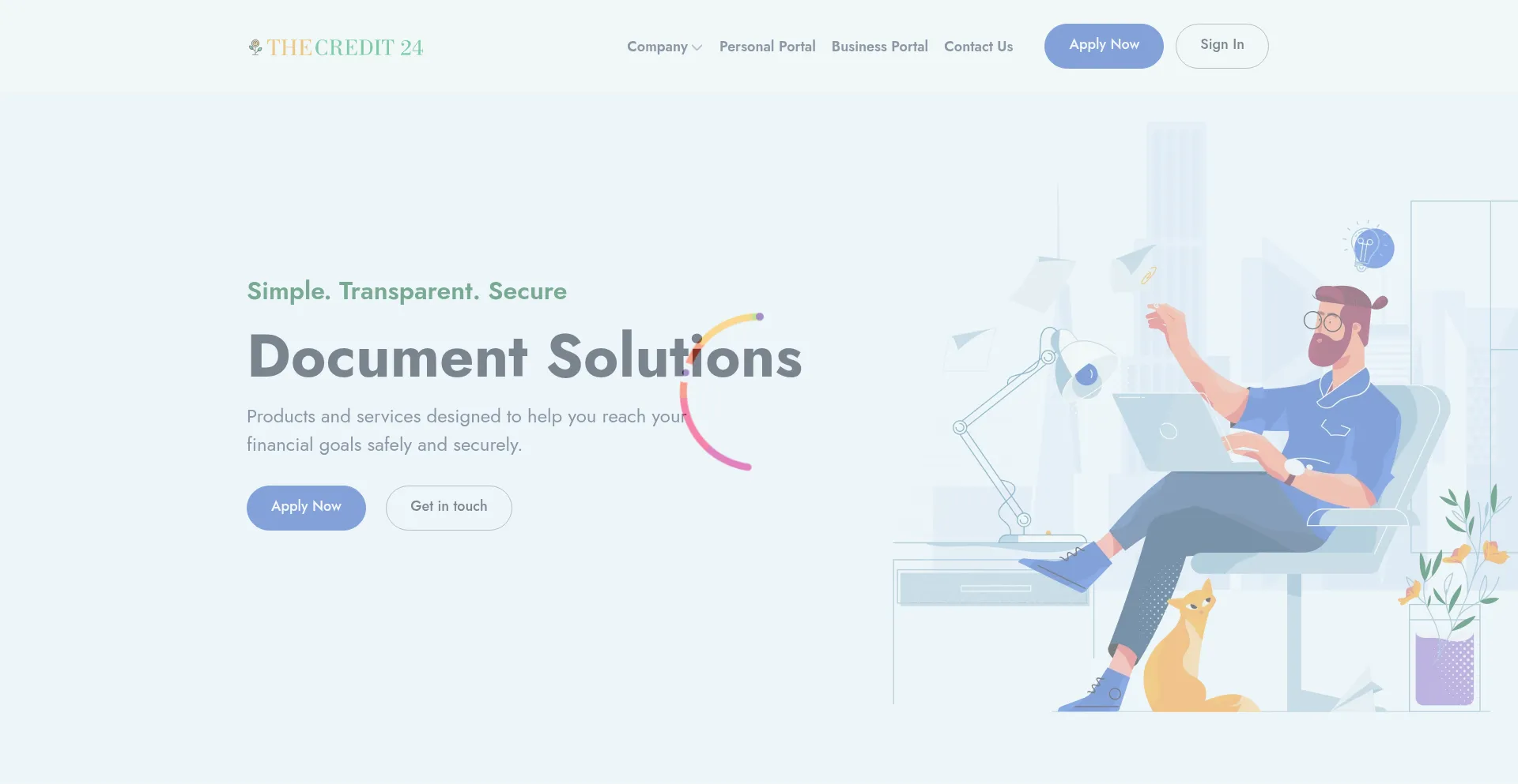 该网站实现数据收集表单,请求个人信息,包括姓名、电子邮件地址、电话号码或其他敏感详细信息。用户应验证 thecredit24.com 的合法性并在提交个人数据前查看隐私政策。