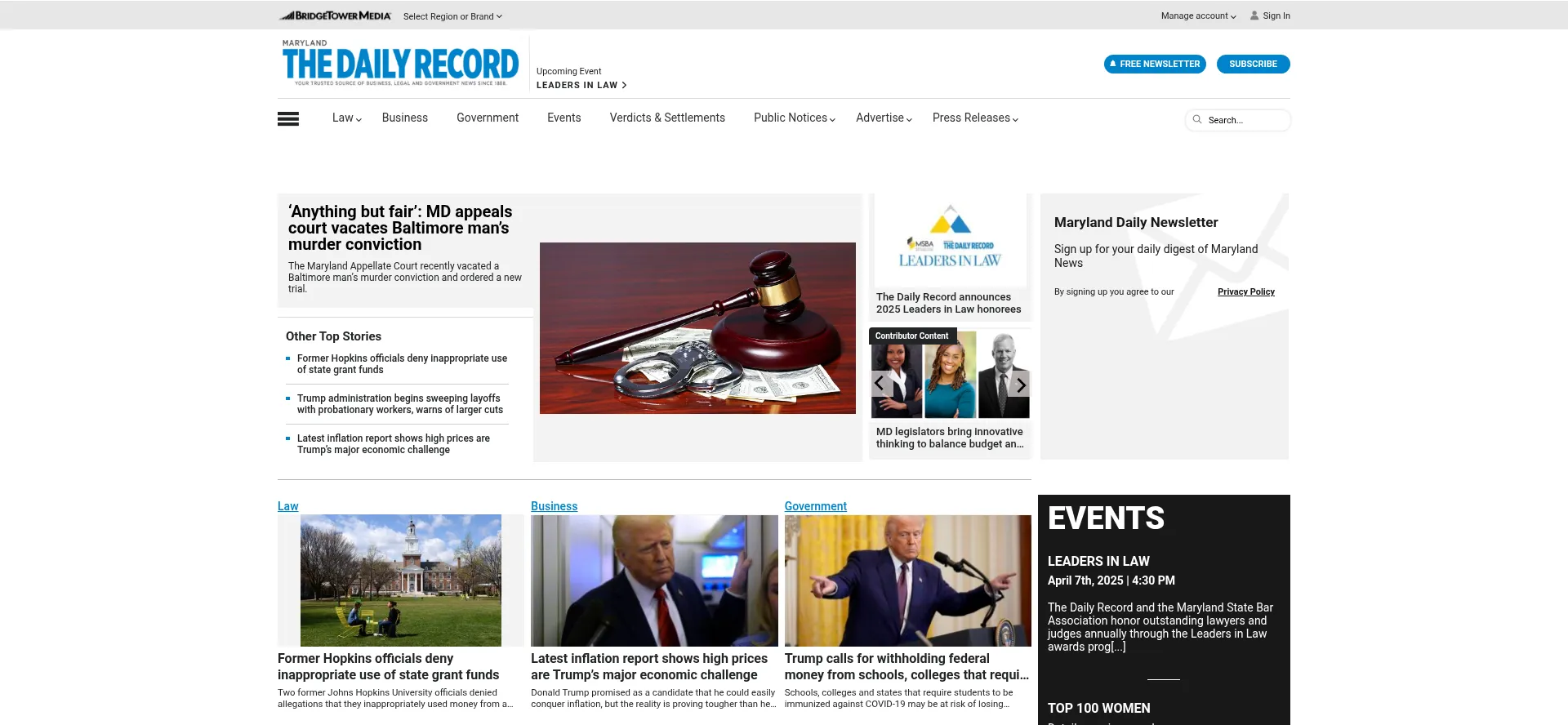 The Daily Record has been the only daily brand dedicated to covering business, legal and legislative news across the state of Maryland.