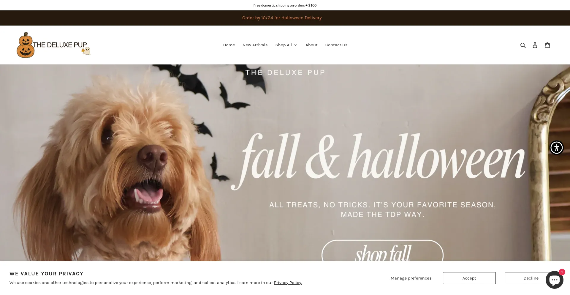该网站实现符合GDPR或CCPA等隐私法规的cookie同意机制。这表明 thedeluxepup.com 遵守数据保护标准并为用户提供对个人数据收集实践的控制。