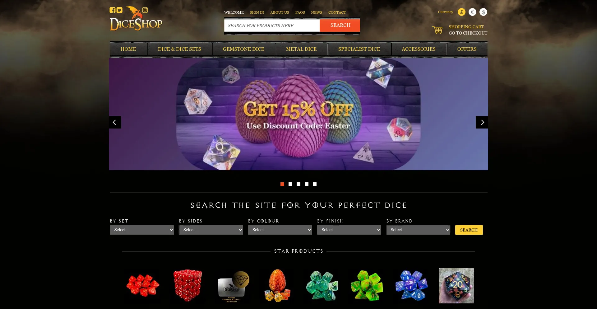 The Dice Shop Online are the World's largest volume retailer and are stockists of many different colours, types, sides, brands, sets and finishes of dice. With delivery to any c...