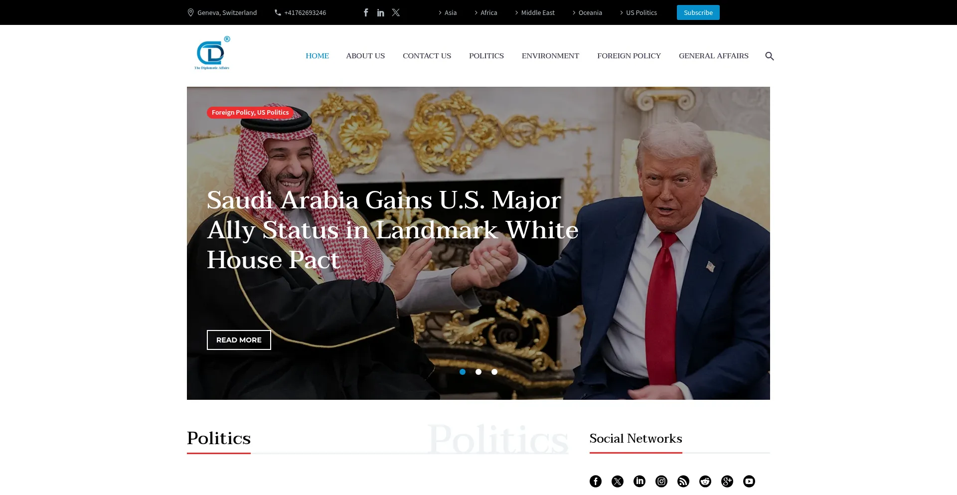 网站上存在社交媒体链接表明 thediplomaticaffairs.com 在社交媒体上维护官方账户,这是可信度和参与度的积极信号。