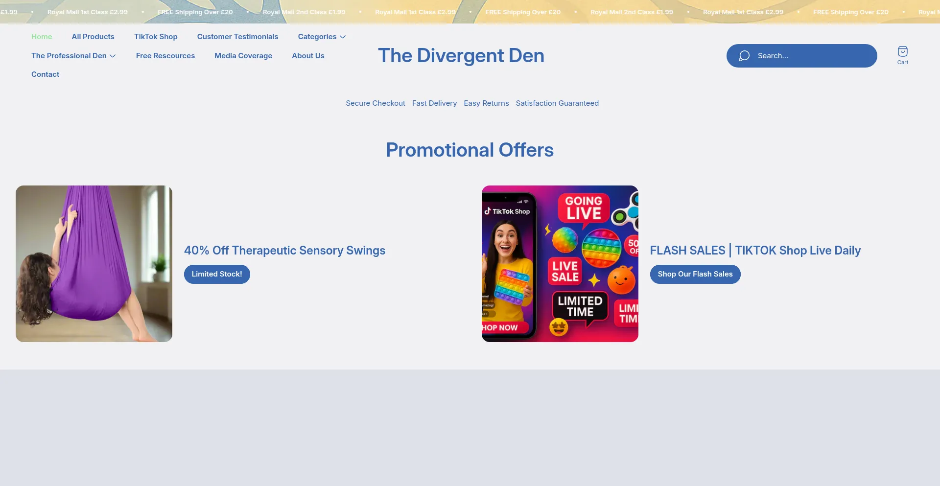 网站 thedivergentden.co.uk 使用免费电子商务平台解决方案,这可能表明成本意识运营,但也可能暗示与企业级解决方案相比在安全功能、客户支持或高级功能方面的限制。