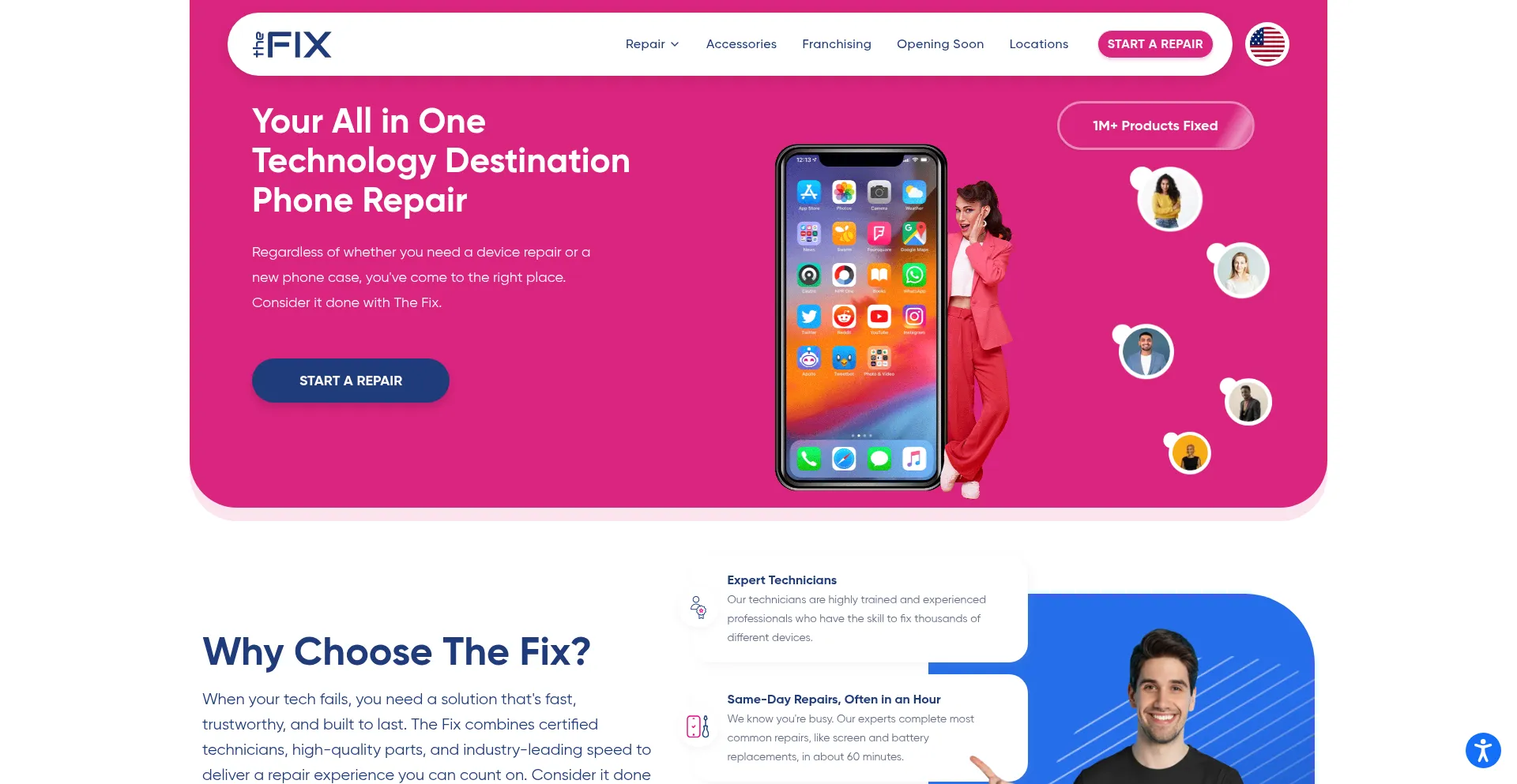 Expert device repairs at The Fix. iPhone, Samsung, iPad, laptop, and computer repairs. Walk-in service with same-day repairs available. Find your location.