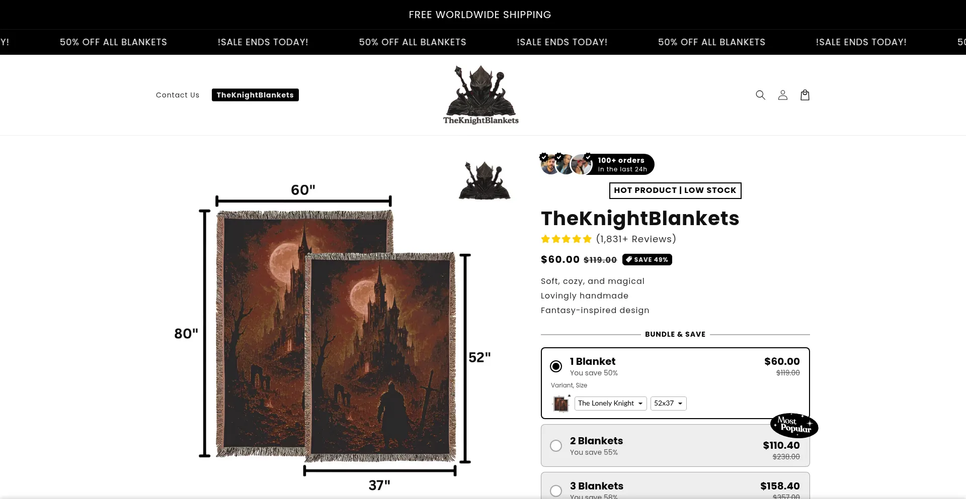网站 theknightblankets.store 使用免费电子商务平台解决方案,这可能表明成本意识运营,但也可能暗示与企业级解决方案相比在安全功能、客户支持或高级功能方面的限制。