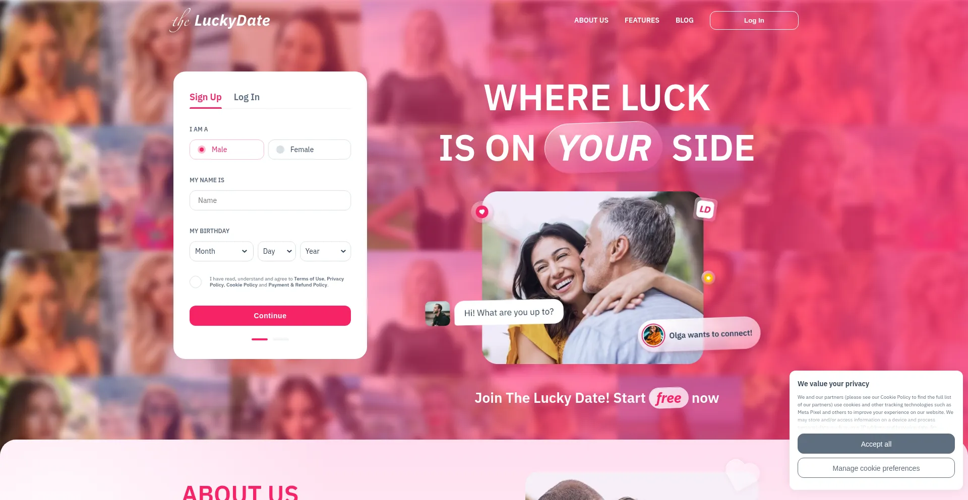 该网站实现符合GDPR或CCPA等隐私法规的cookie同意机制。这表明 theluckydate.com 遵守数据保护标准并为用户提供对个人数据收集实践的控制。