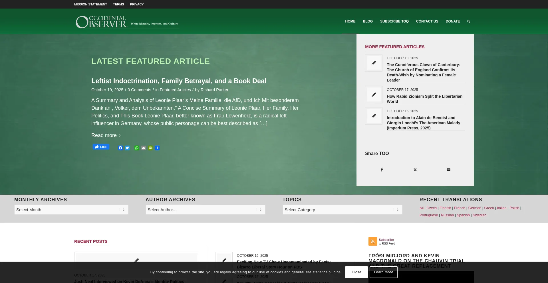 网站上存在社交媒体链接表明 theoccidentalobserver.net 在社交媒体上维护官方账户,这是可信度和参与度的积极信号。