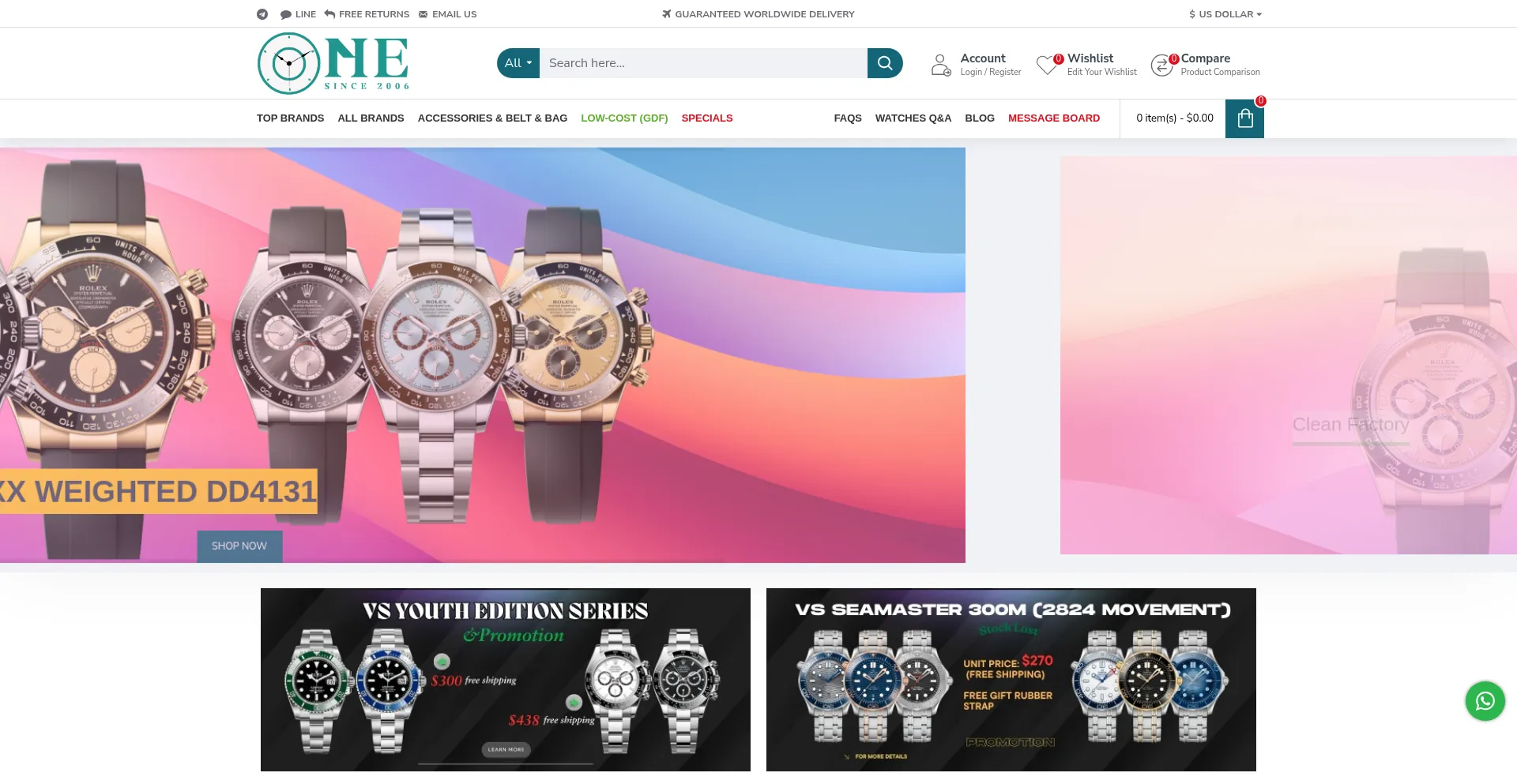 该网站展示奢侈品牌名称或高价值产品。这可能表明潜在的假冒商品或未经授权的品牌使用,特别是如果该网站缺乏官方经销商授权。在评估真实性时请格外谨慎。