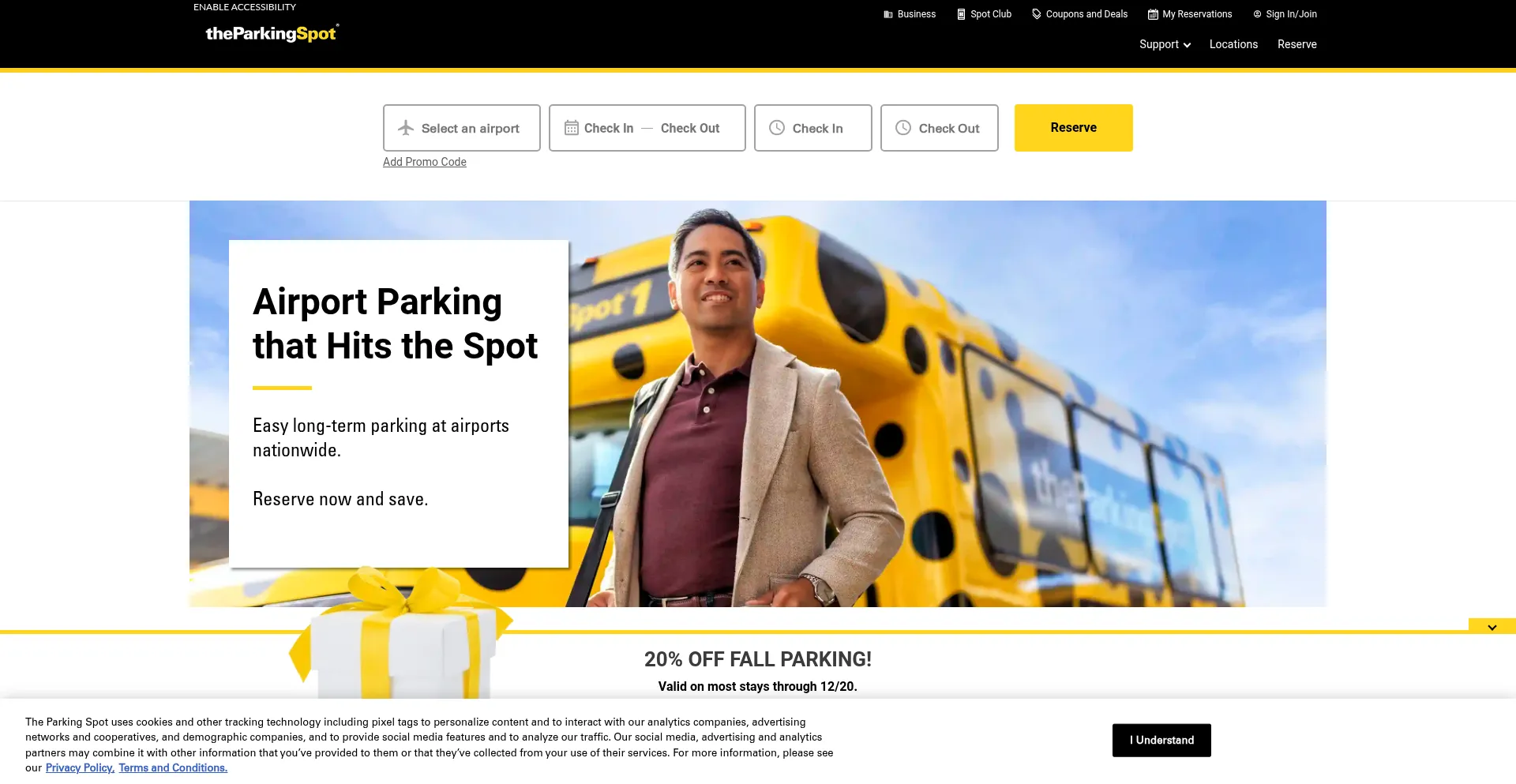 该网站实现符合GDPR或CCPA等隐私法规的cookie同意机制。这表明 theparkingspot.com 遵守数据保护标准并为用户提供对个人数据收集实践的控制。