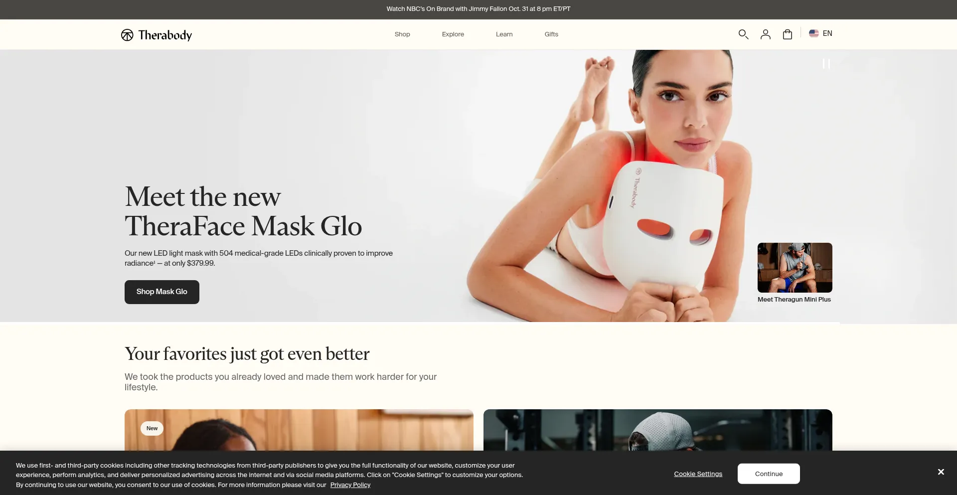 该网站实现符合GDPR或CCPA等隐私法规的cookie同意机制。这表明 theragun.com 遵守数据保护标准并为用户提供对个人数据收集实践的控制。