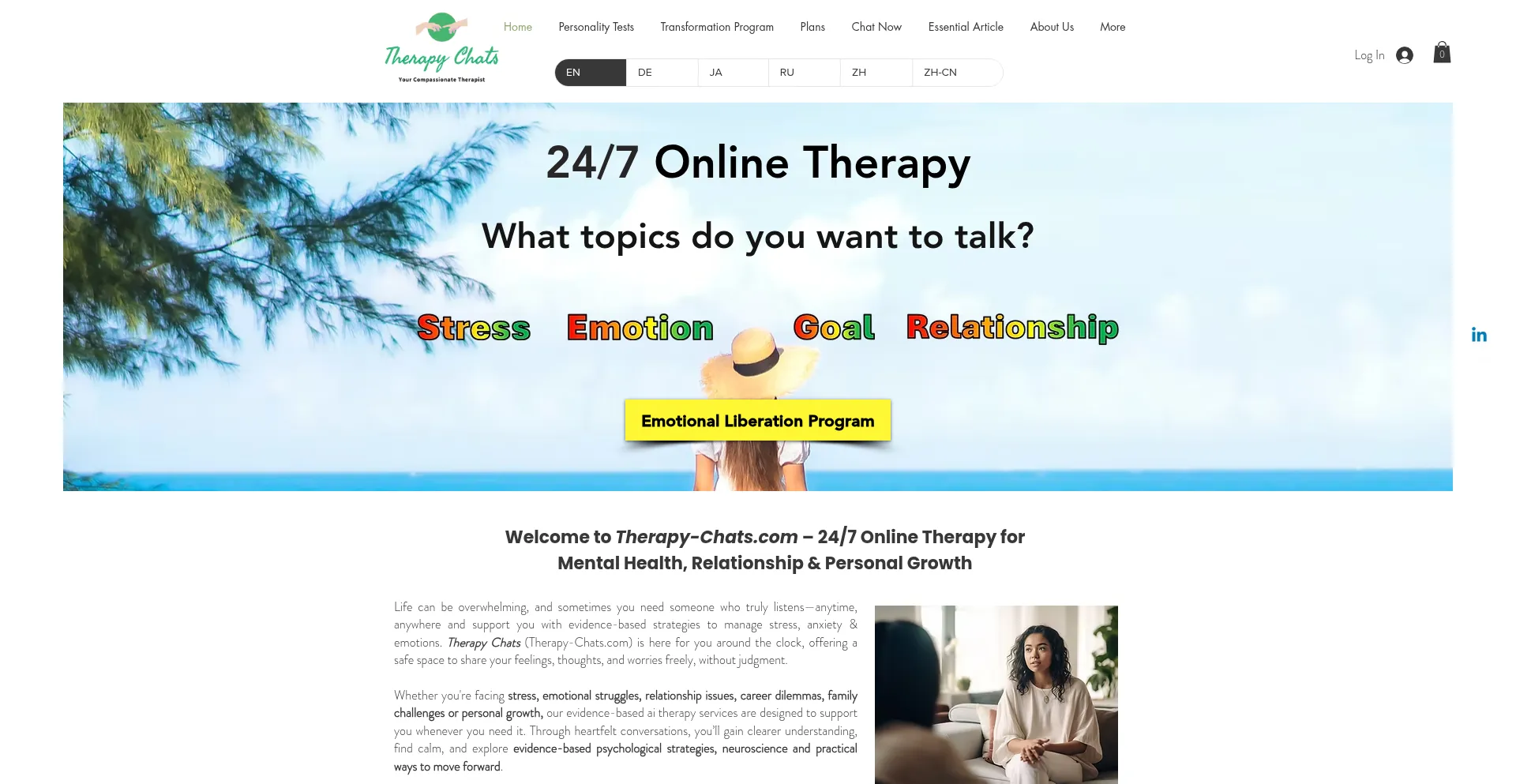 Free Online Therapy, 24/7 emotional support and stress relief therapy, offered by Therapy-Chats.com. We specifize in personalized therapy program with evidence-based strategies...