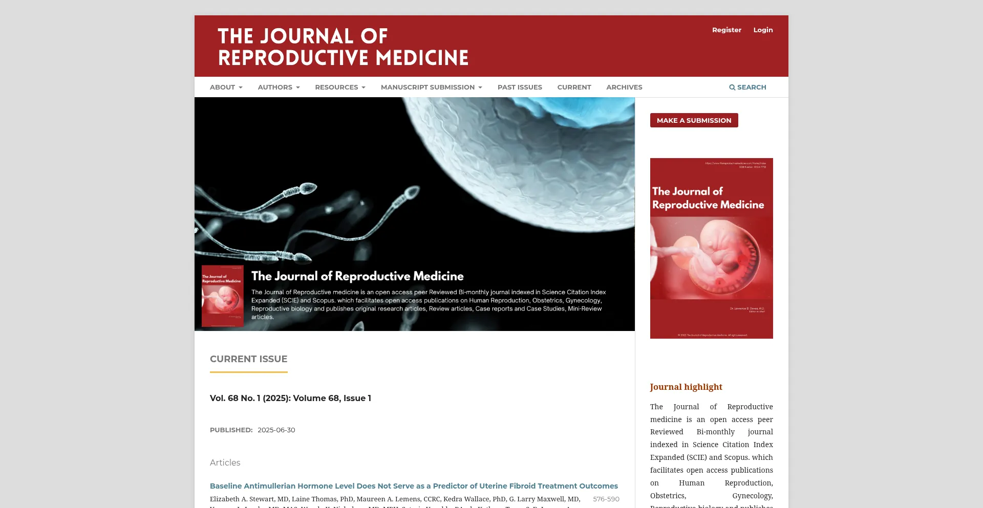 The Journal of Reproductive Medicine (JRM) is a Web of Science (SCI) indexed journal with an impact factor of 1.09, publishing cutting-edge research on reproductive health, infe...