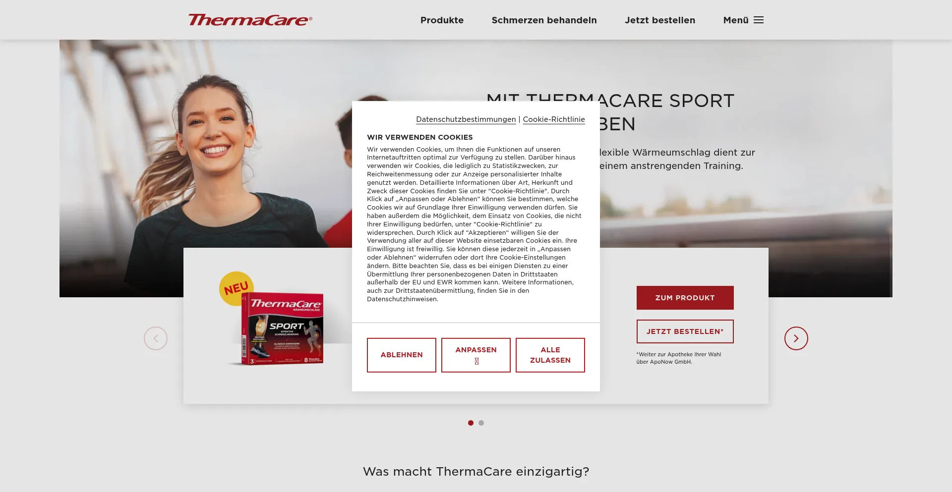 thermacare.de 使用 Google Tag Manager 在其网站上添加和更新追踪代码(标签)。