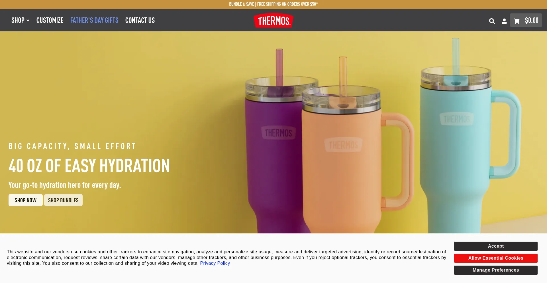网站 thermos.com 使用免费电子商务平台解决方案,这可能表明成本意识运营,但也可能暗示与企业级解决方案相比在安全功能、客户支持或高级功能方面的限制。