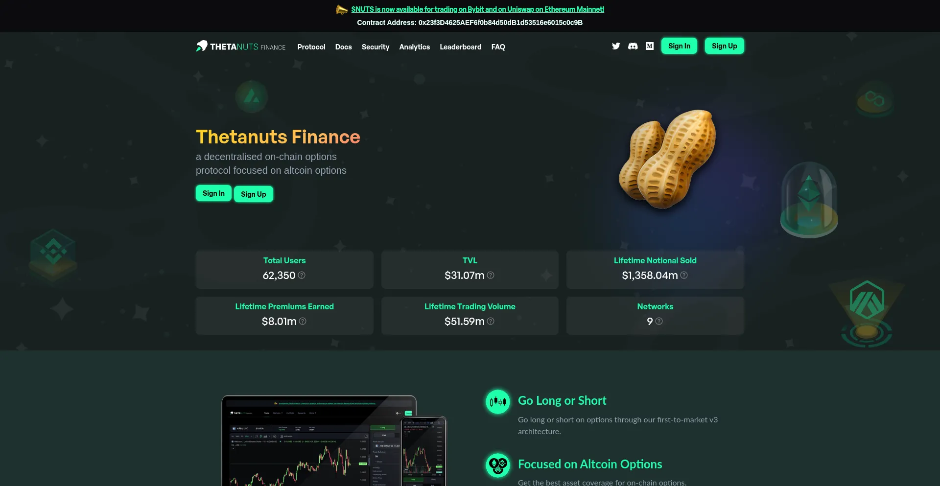 Thetanuts Finance is a decentralized on-chain options protocol focused on altcoin options, allowing users to go long or short on on-chain options.