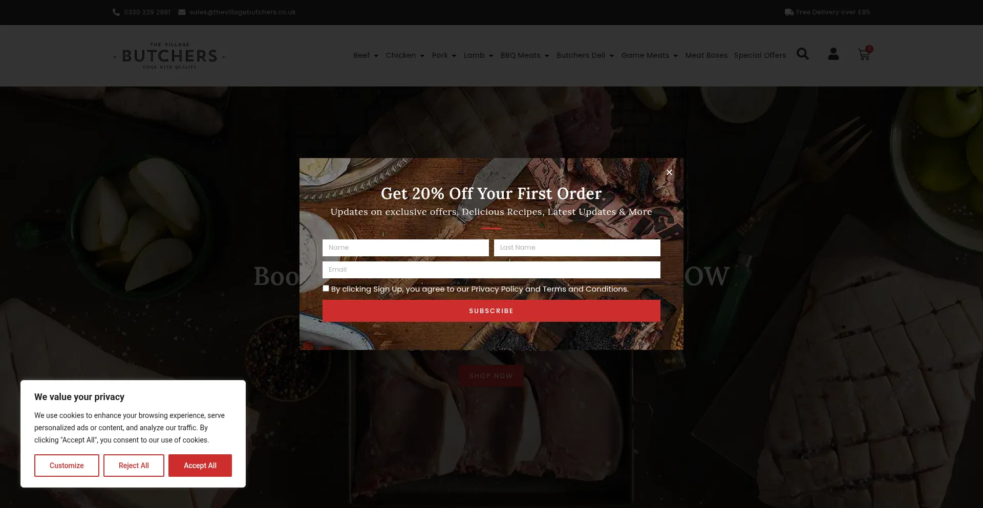 该网站实现符合GDPR或CCPA等隐私法规的cookie同意机制。这表明 thevillagebutchers.co.uk 遵守数据保护标准并为用户提供对个人数据收集实践的控制。