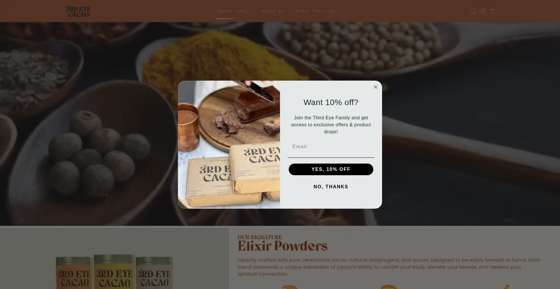 该网站实现数据收集表单,请求个人信息,包括姓名、电子邮件地址、电话号码或其他敏感详细信息。用户应验证 thirdeyecacao.com 的合法性并在提交个人数据前查看隐私政策。