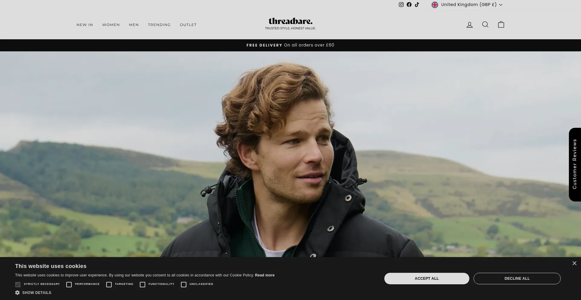 该网站实现符合GDPR或CCPA等隐私法规的cookie同意机制。这表明 threadbare.com 遵守数据保护标准并为用户提供对个人数据收集实践的控制。