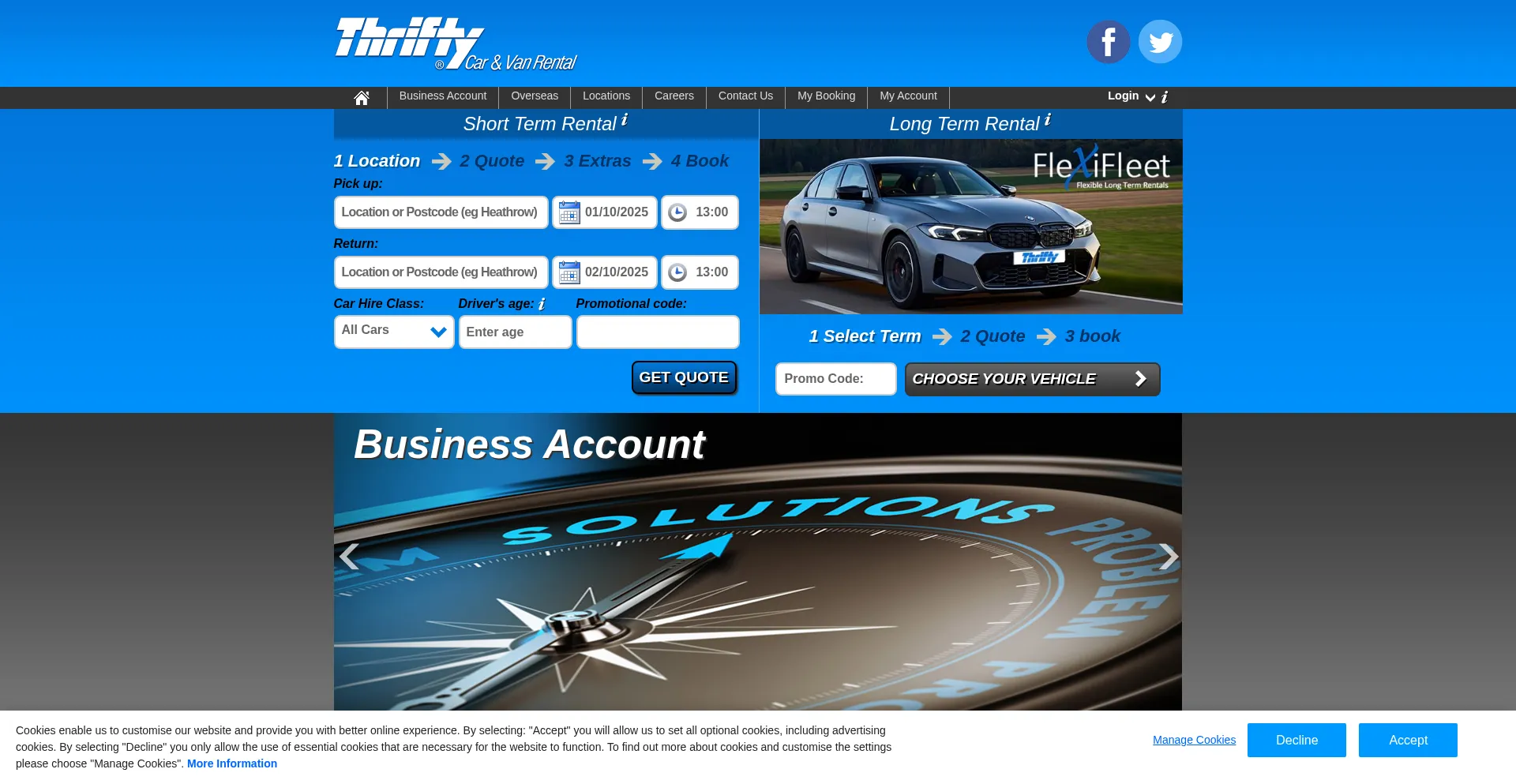 该网站实现符合GDPR或CCPA等隐私法规的cookie同意机制。这表明 thrifty.co.uk 遵守数据保护标准并为用户提供对个人数据收集实践的控制。