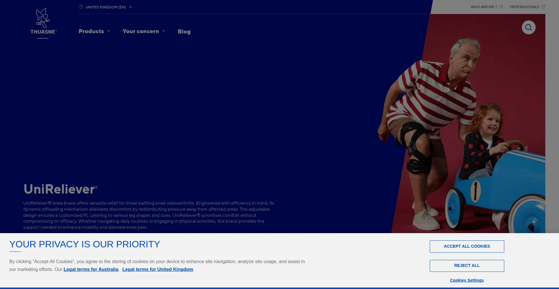 该网站实现符合GDPR或CCPA等隐私法规的cookie同意机制。这表明 thuasne.co.uk 遵守数据保护标准并为用户提供对个人数据收集实践的控制。