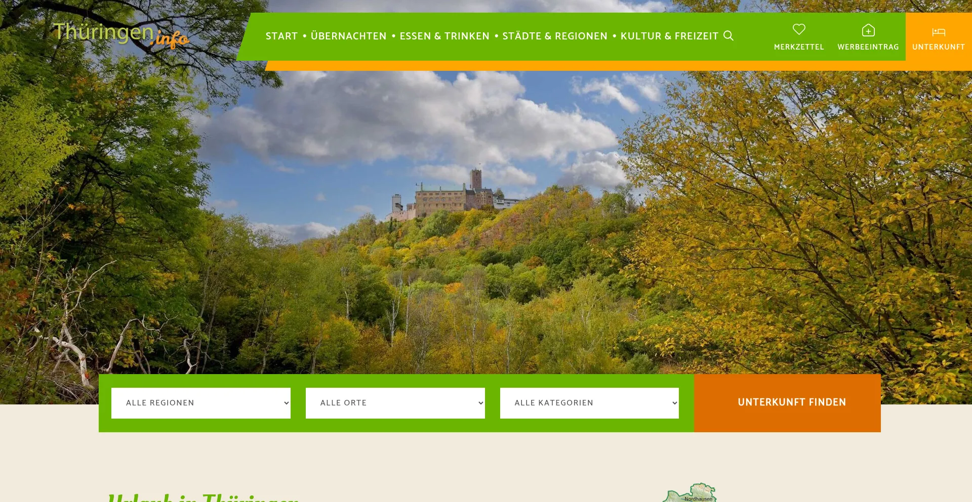 Thüringen - Ihr Urlaubsportal rund um Thüringen, den Thüringer Wald, Rennsteig, Rhön uvm.; mehr als 1200 Unterkünfte (Hotels, Pensionen, Ferienwohnungen, Campingplätze ...).