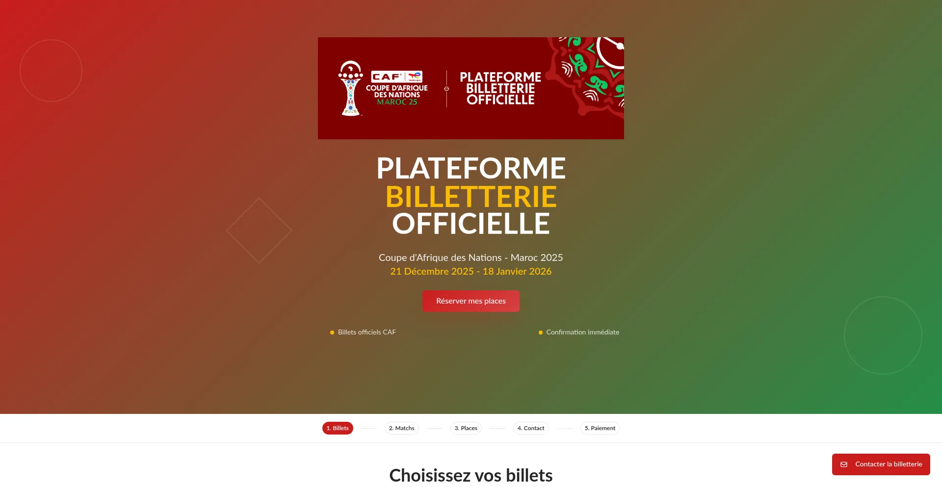 Billetterie officielle de la CAN 2025 au Maroc. Réservez vos places pour la Coupe d'Afrique des Nations du 21 décembre 2025 au 18 janvier 2026. Les places sont limitées.