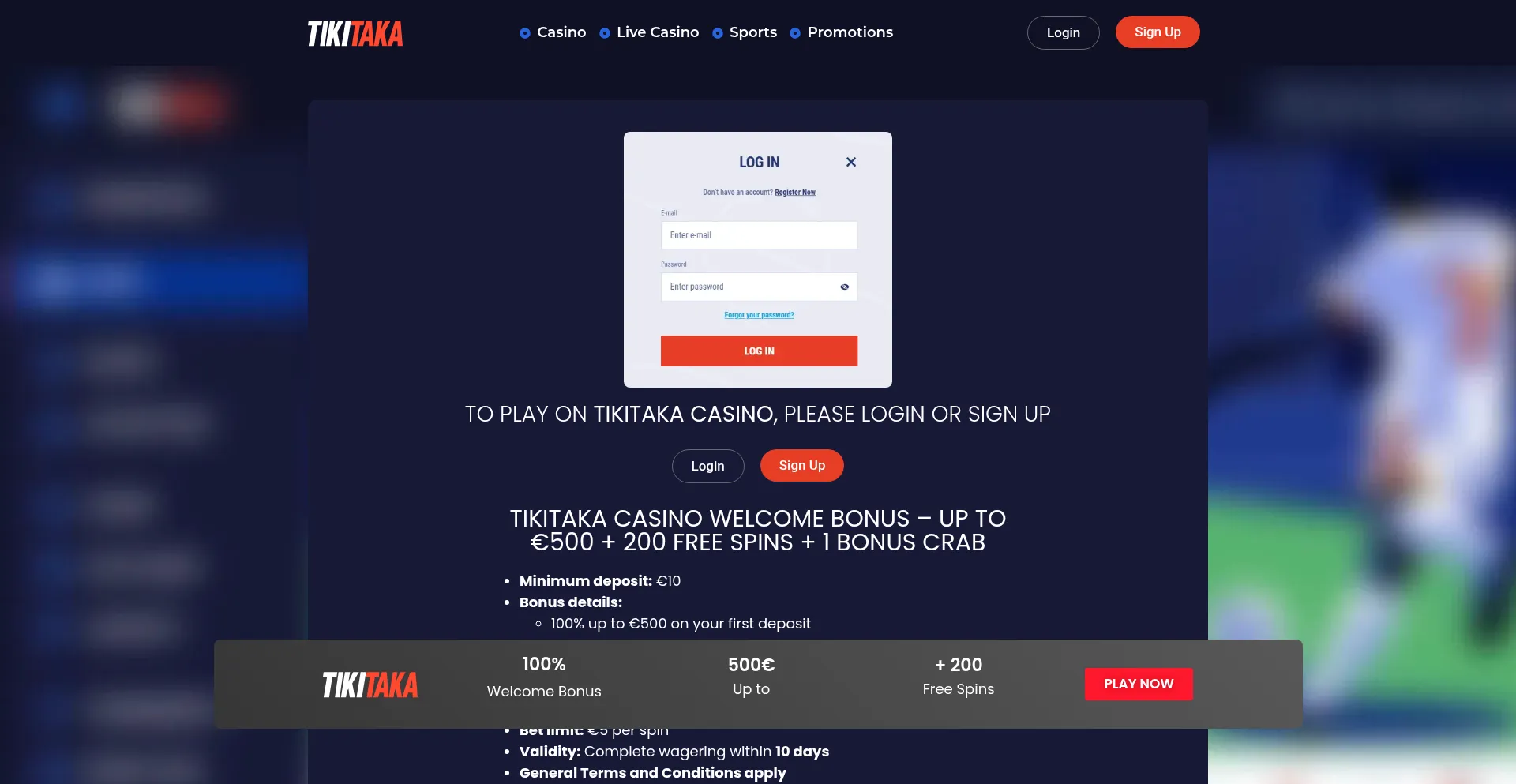Tikitaka Casino Sign Up - Play & Claim £500 Bonus + 200 Free Spins