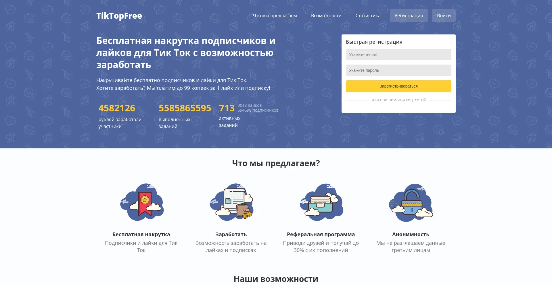 Накручивайте бесплатно подписчиков и лайки для TikTok (Musical.ly).Хотите заработать? Мы платим до 99 копе...