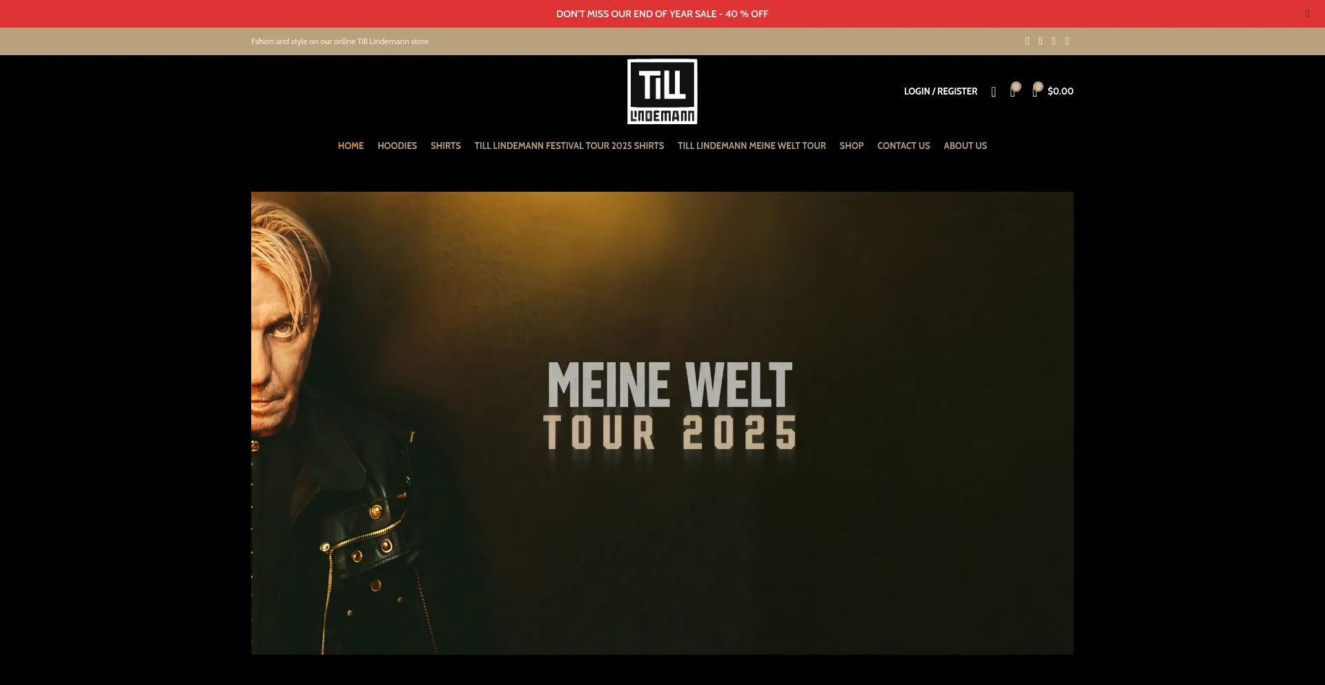 Explore the official Till Lindemann Shop for exclusive 'Meine Welt' and Festival Tour 2025 apparel—grab stylish shirts, hoodies, festival tees, and limited-edition merch, all ...