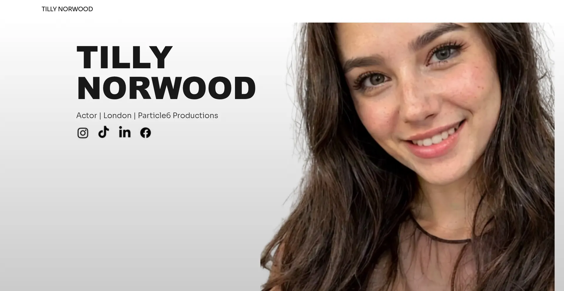 Hi, I'm Tilly Norwood, an AI actress represented by Particle6. This is my official portfolio. Explore my latest photos and video content below.