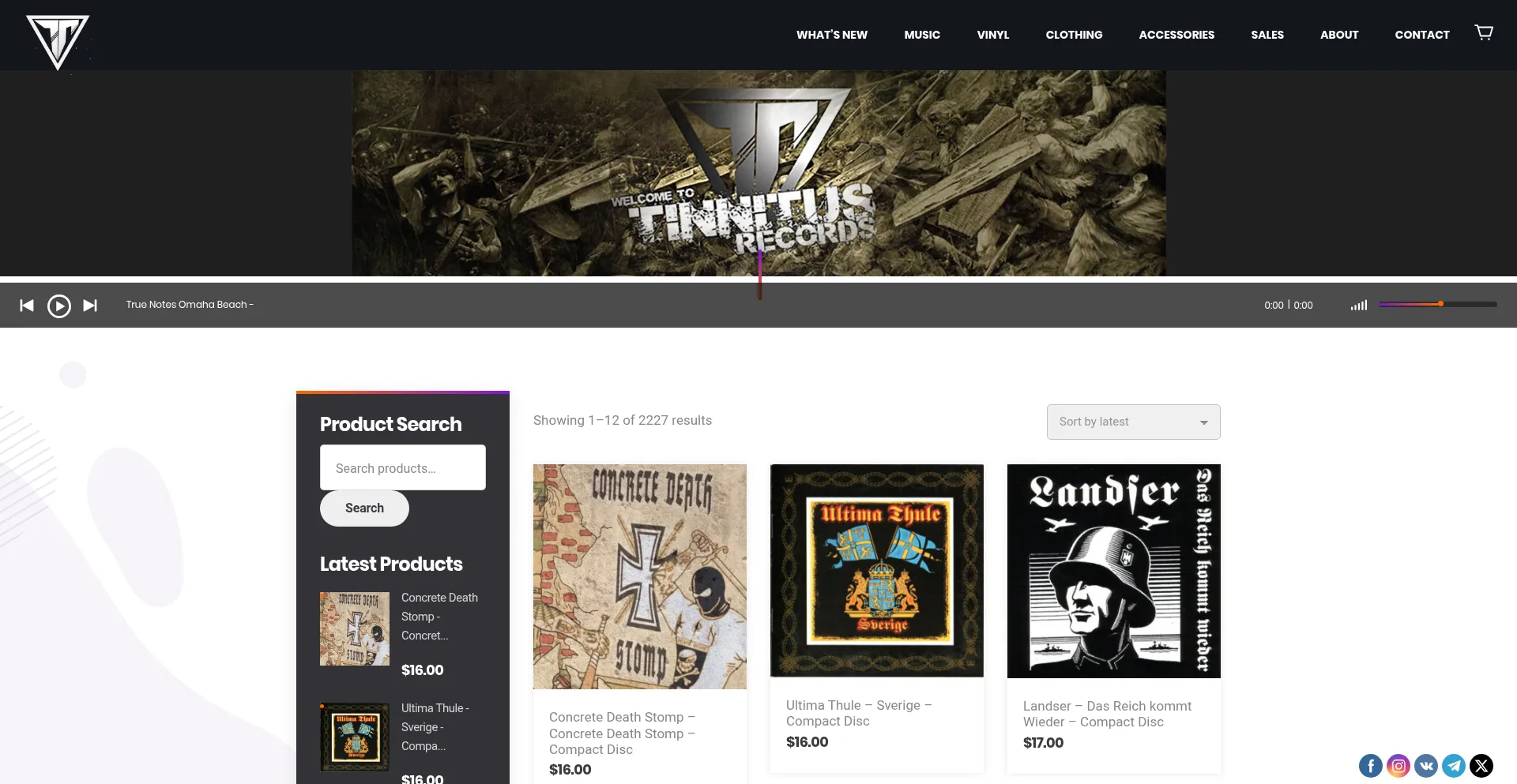 网站上存在社交媒体链接表明 tinnitusrecords.com 在社交媒体上维护官方账户,这是可信度和参与度的积极信号。