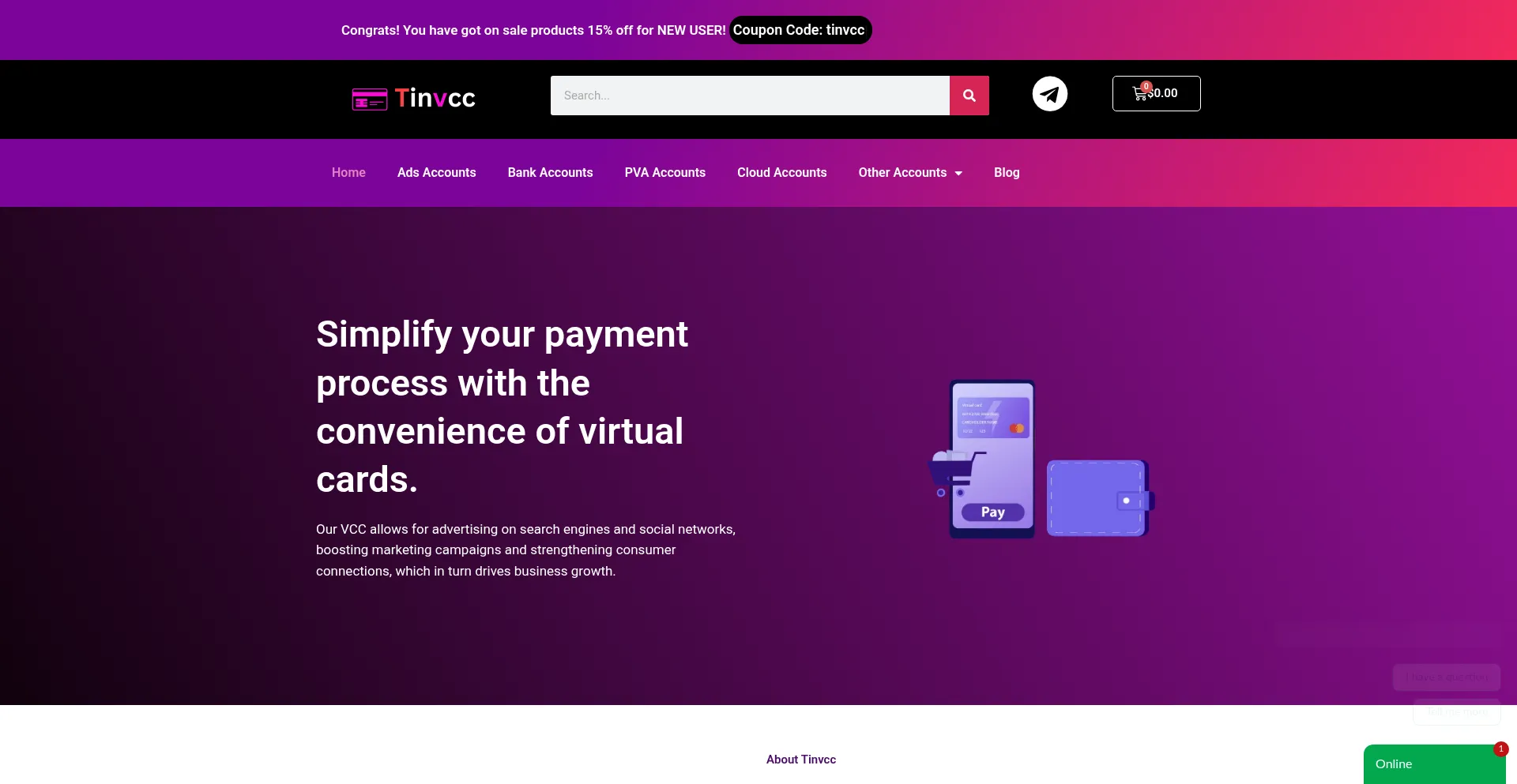 Buy Google ads, Bing Ads, Payment Gateway - TinVCC.Com
