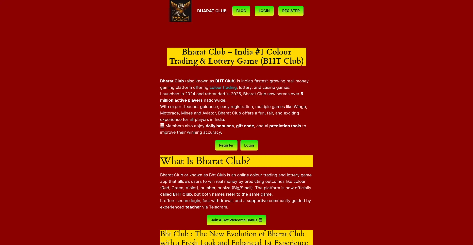 Join Bharat Club now! Login to official Bht Club app and play colour trading game. Enjoy bonuses up to ₹2000 for new members. Register now!
