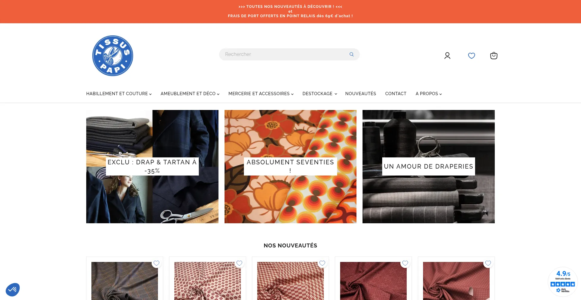 Tissus Papi, spécialiste de la vente de tissu en ligne : viscose, coton, lainages, tissus OEKO-TEX, Japonais, toile de Jouy et jute. Pour couture, habillement et ameublement, 6...