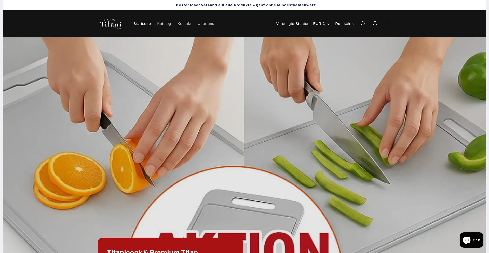 Entdecke Titanicook®: Titan-Schneidebretter, Titan-Pfannen & Premium Messer – hygienisch, langlebig & perfekt für gesundes Kochen.