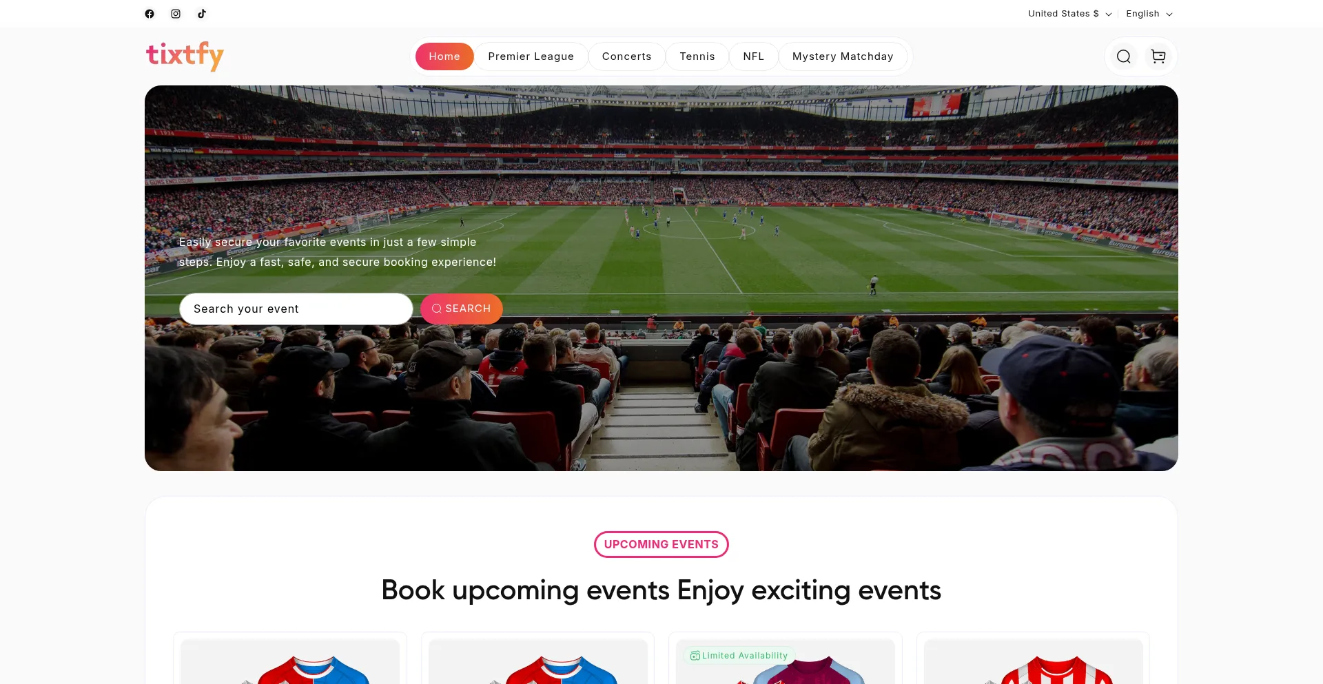 网站上存在社交媒体链接表明 tixtfy.com 在社交媒体上维护官方账户,这是可信度和参与度的积极信号。