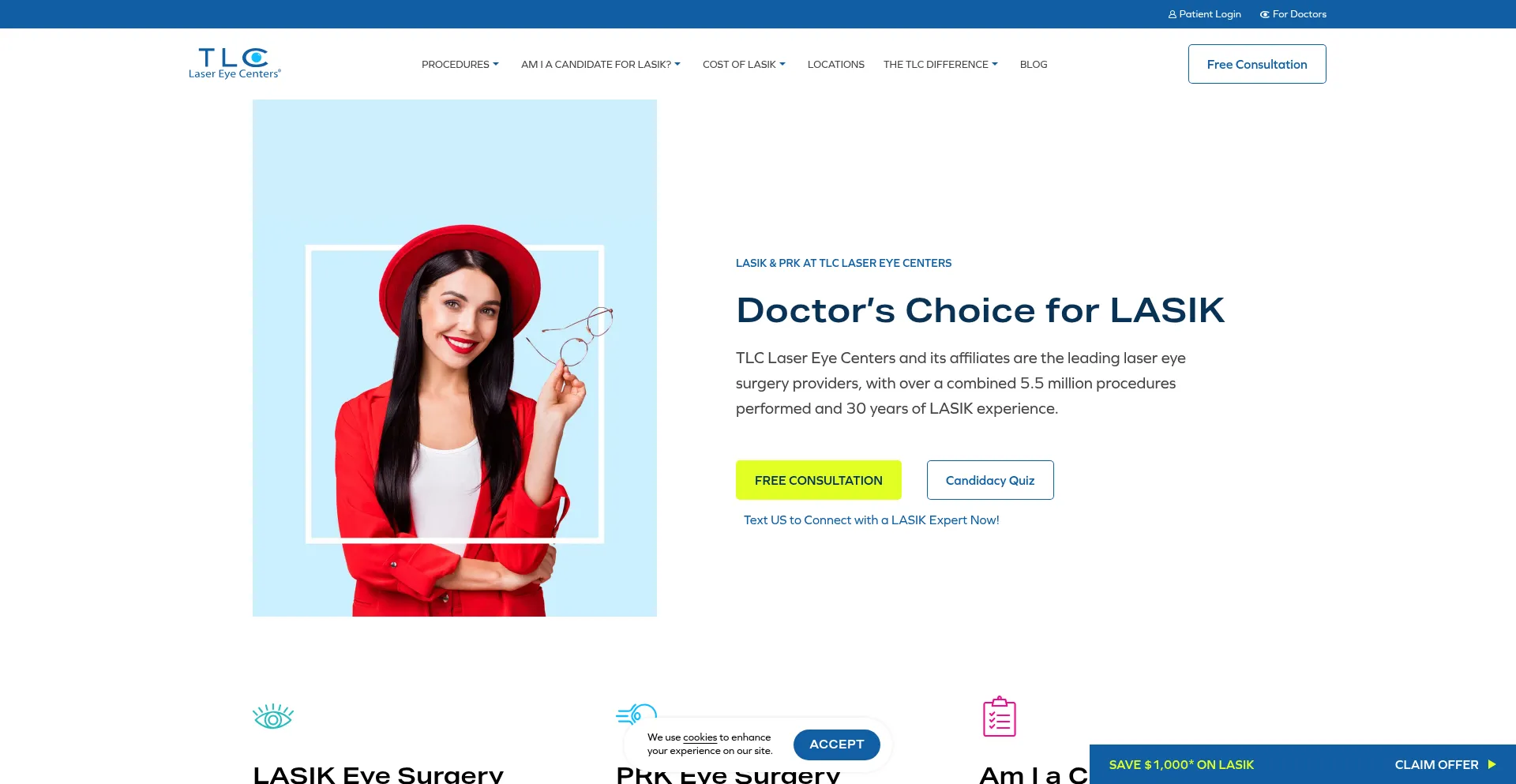 TLC Laser Eye Centers and its affiliates are the leading laser eye surgery providers, with over a combined 5.5 million procedures performed and 30 years of LASIK experience.