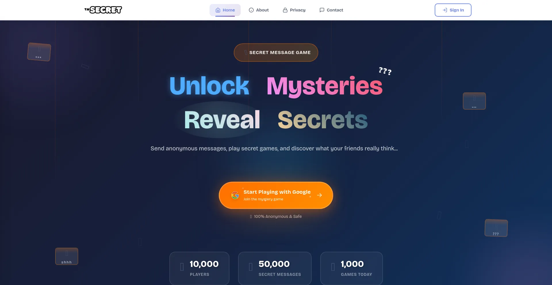 Send anonymous messages to your friends! Get honest feedback, confessions, and fun questions. Your identity stays completely hidden. Join thousands sharing secrets anonymously.