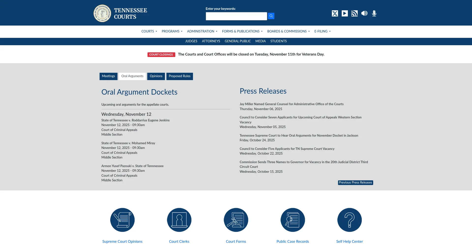网站上存在社交媒体链接表明 tncourts.gov 在社交媒体上维护官方账户,这是可信度和参与度的积极信号。