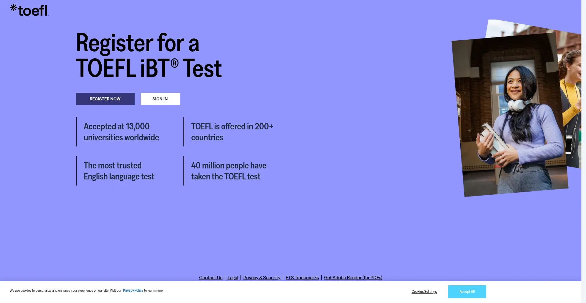 该网站实现符合GDPR或CCPA等隐私法规的cookie同意机制。这表明 toeflibt.ets.org 遵守数据保护标准并为用户提供对个人数据收集实践的控制。