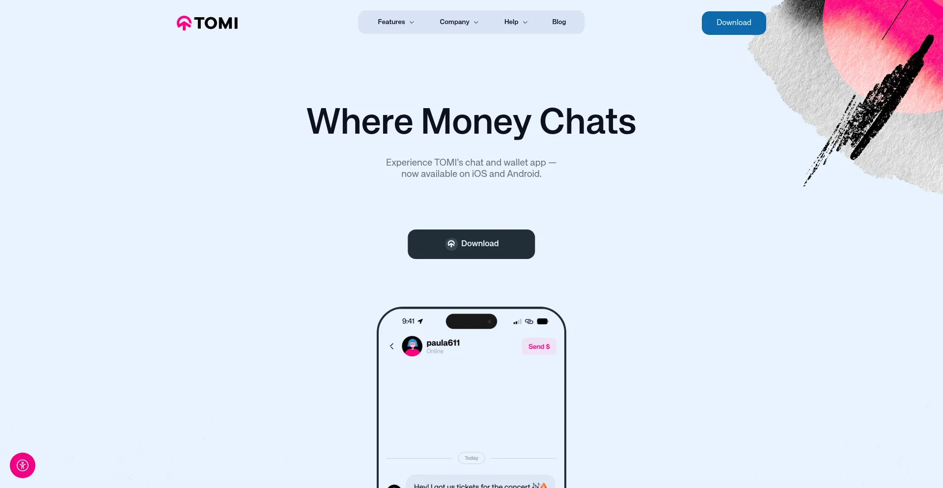 tomi.com 拥有可用的 iOS 移动应用程序,表明为 Apple 设备用户提供跨平台可访问性。