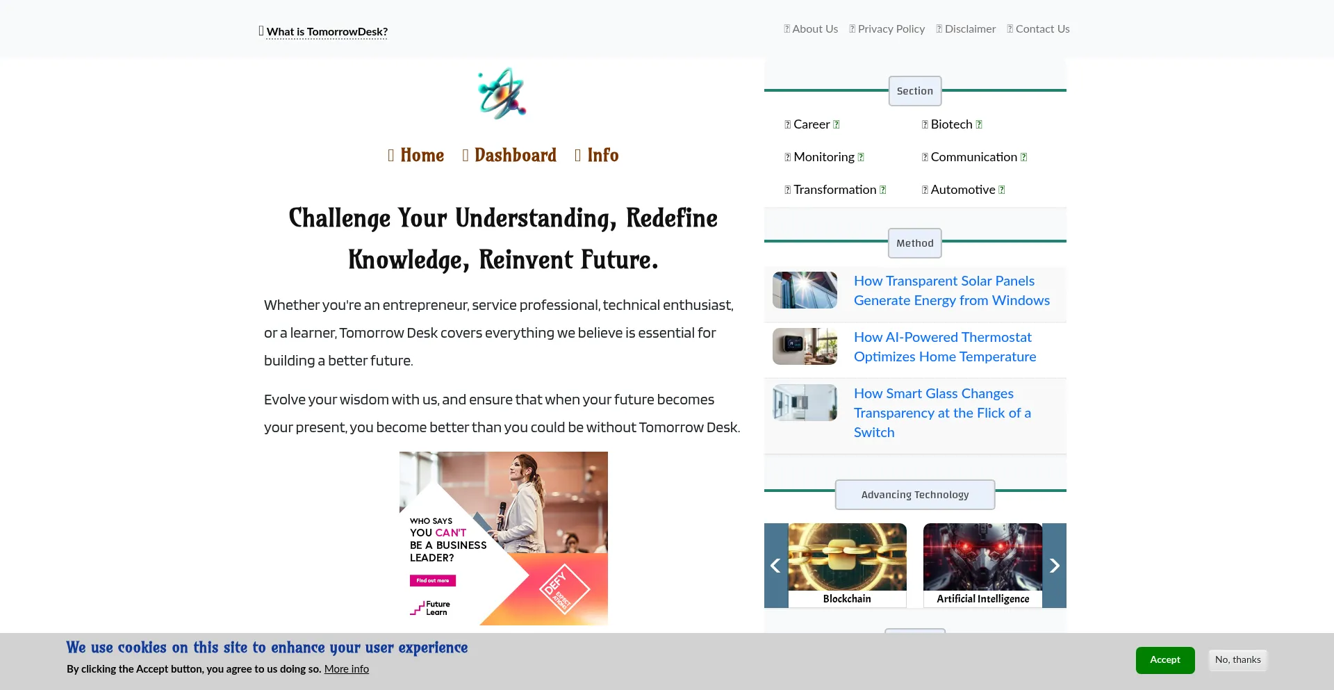 该网站实现符合GDPR或CCPA等隐私法规的cookie同意机制。这表明 tomorrowdesk.com 遵守数据保护标准并为用户提供对个人数据收集实践的控制。