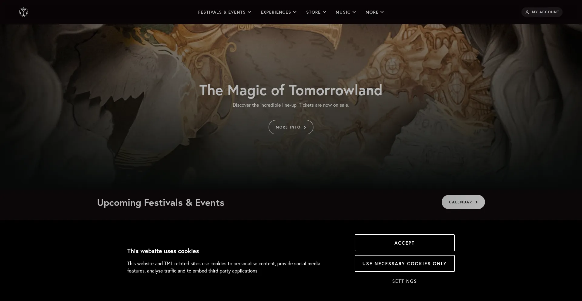 该网站实现符合GDPR或CCPA等隐私法规的cookie同意机制。这表明 tomorrowland.com 遵守数据保护标准并为用户提供对个人数据收集实践的控制。