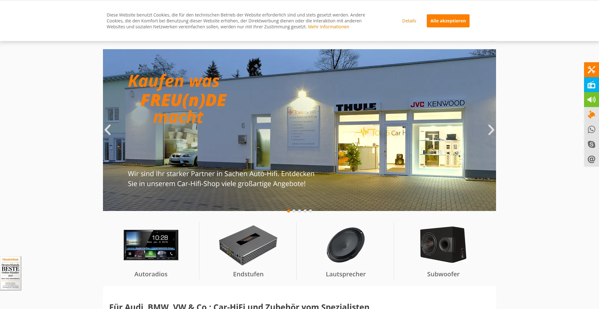 Ob Audi, BMW oder VW: Audio & Zubehör liefert TOMS Car-HiFi | Toms-Car-Hifi - Kaufen was Freu(n)de macht!