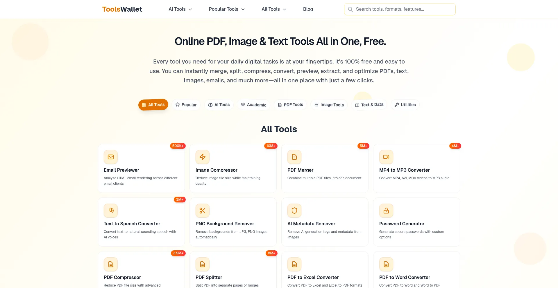 ToolsWallet - 25+ Free Online Tools | AI Text to Speech, PDF Converter, Image Editor