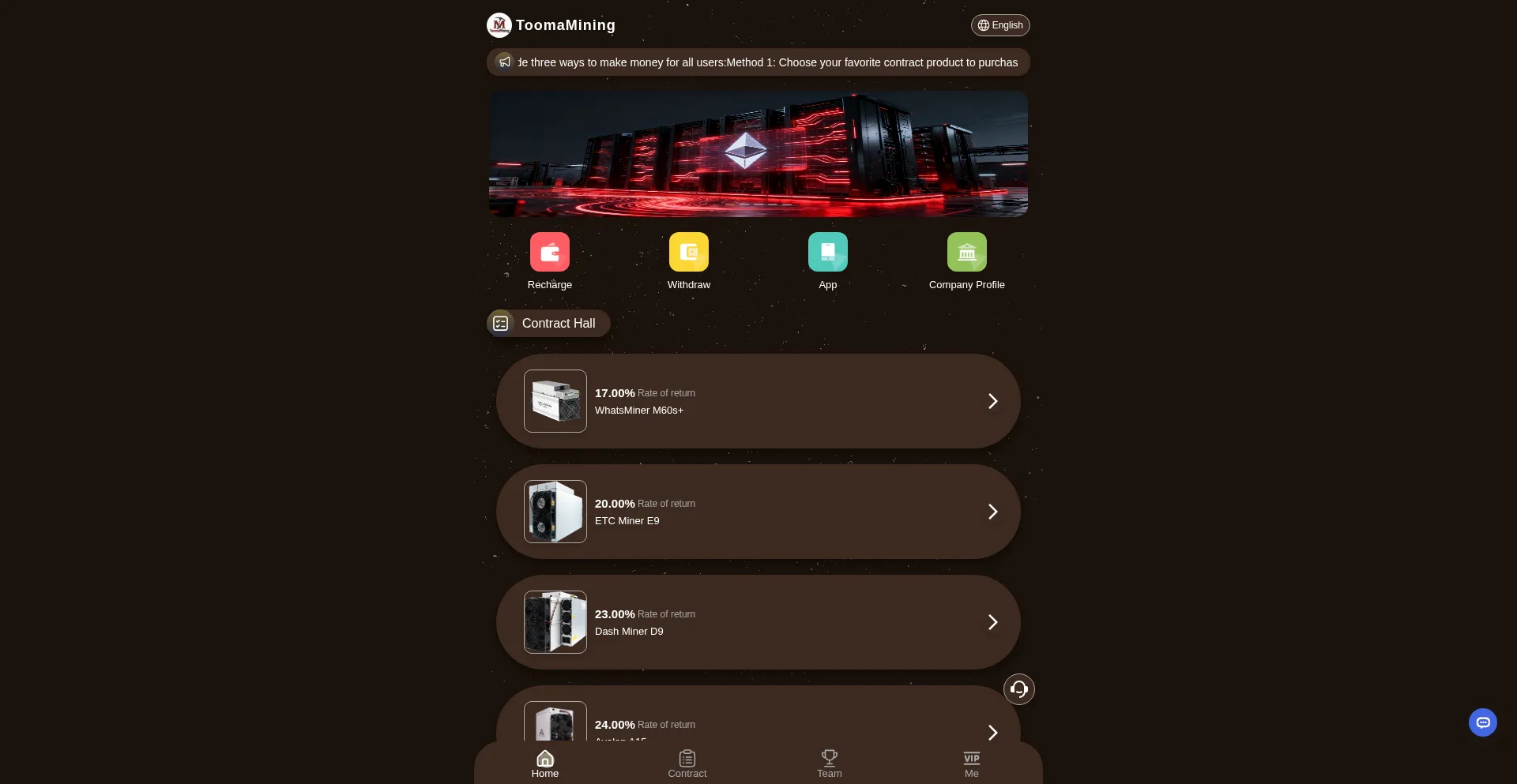 Toomamining.com 运营欺诈性金融平台,推广具有不现实回报承诺的欺骗性投资机会。安全分析表明该平台采用与 庞氏骗局 和预付费欺诈一致的策略,旨在提取用户资金和个人信息。