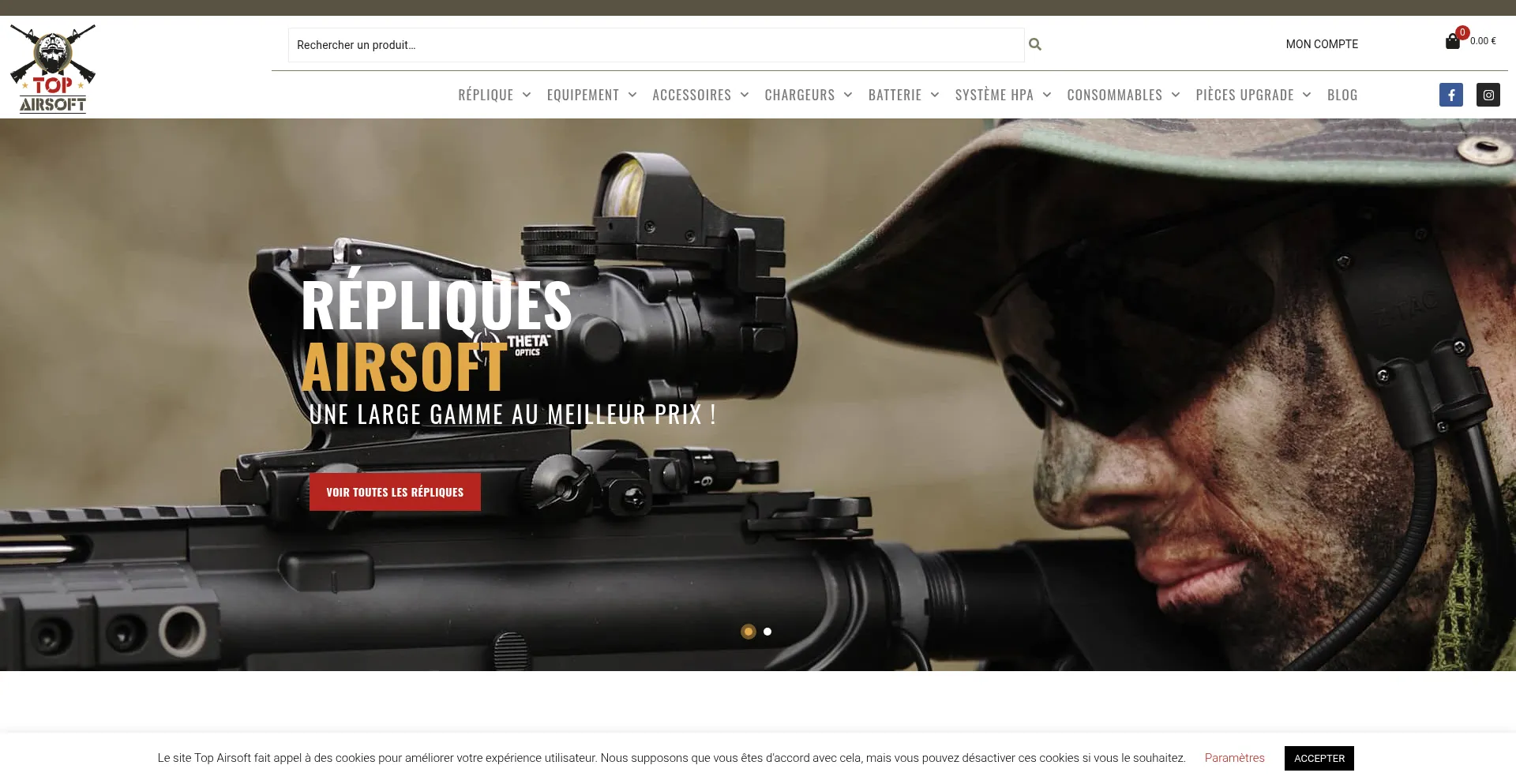 Bienvenue sur Top Airsoft, boutique en ligne de produits pour la pratique de l'airsoft : répliques, accessoires, consommables et équipements airsoft.